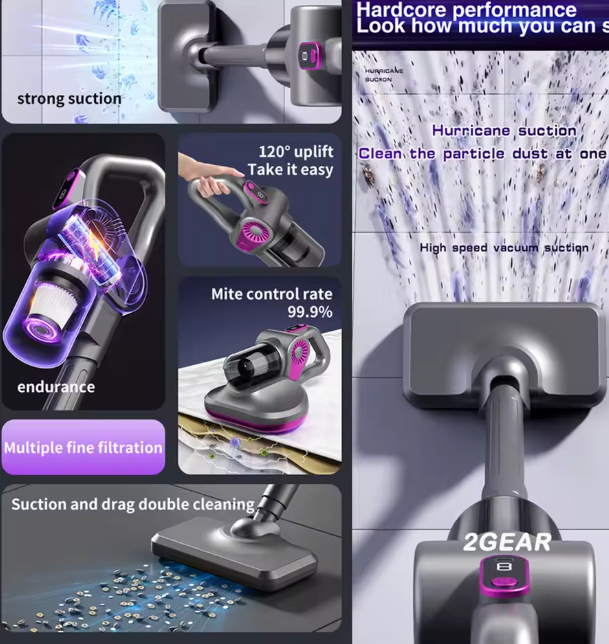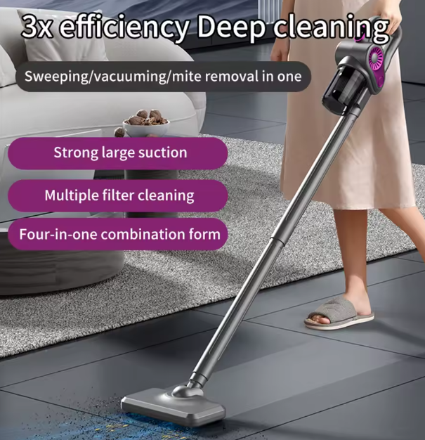 La aspiradora inalámbrica de mano 4 en 1 es el electrodoméstico perfecto para quienes buscan un hogar impecable con el menor esfuerzo. Su diseño multifuncional permite limpiar suelos alfombrados, eliminar ácaros y alcanzar rincones difíciles con total comodidad. Gracias a su potente motor y tecnología avanzada, ofrece una limpieza profunda y eficiente, convirtiéndose en un must-have en el mercado de hogar inteligente y gadgets de limpieza.