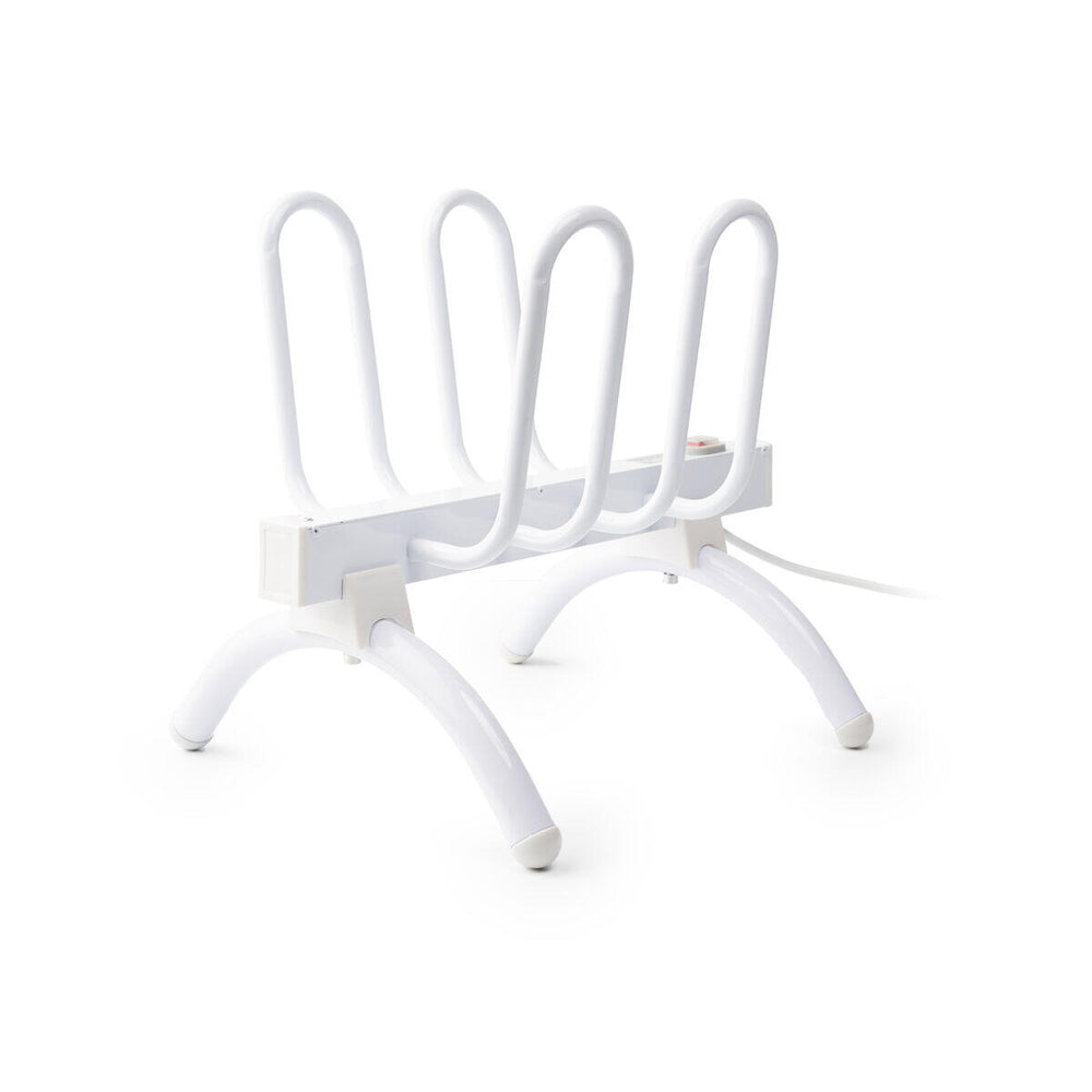 Un tendedero eléctrico de calzado muy fácil de usar. Sólo hay que colocar el calzado en los soportes, conectar a la red eléctrica y pulsar el botón on/off con indicador luminoso.
