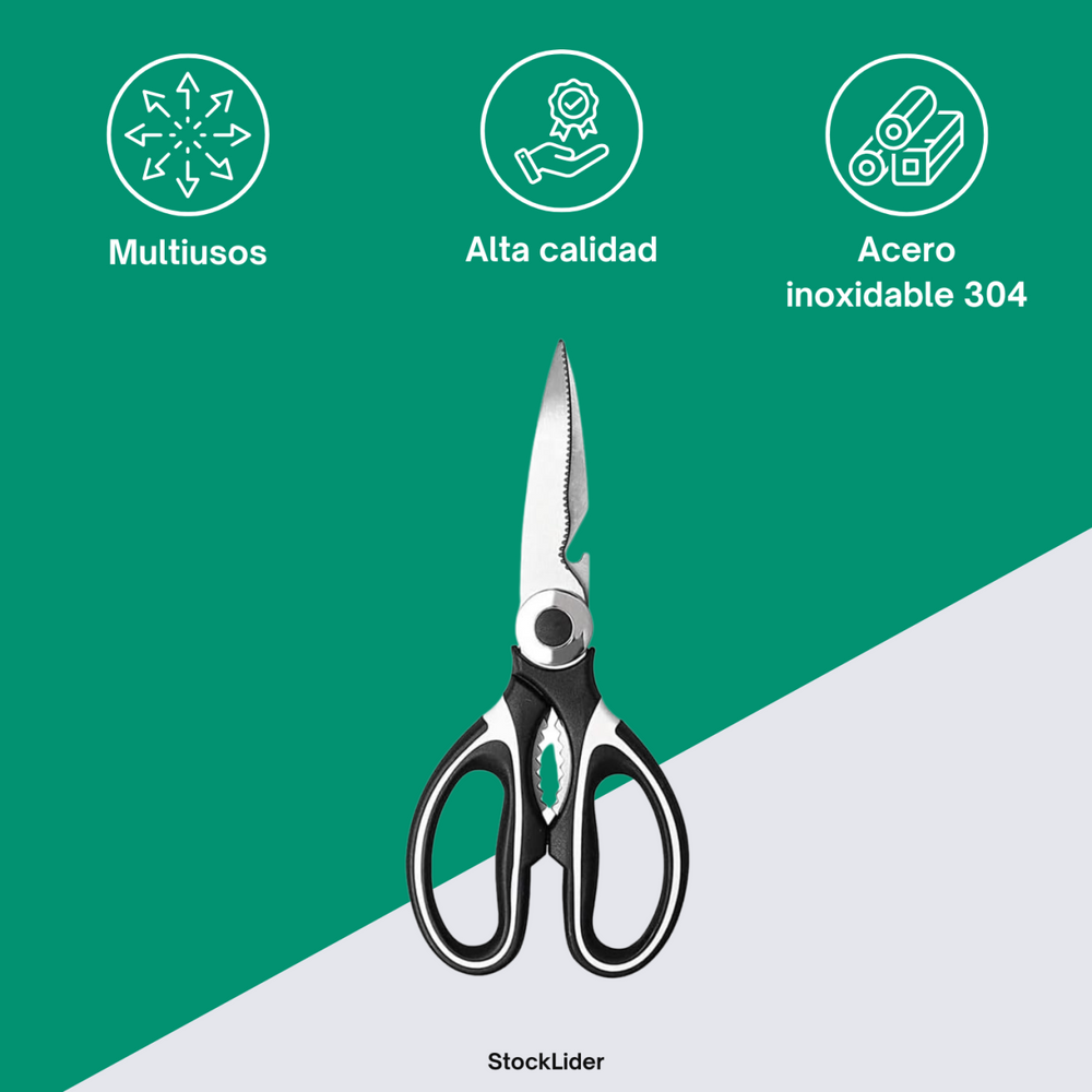 Estas tijeras no solo cortan, también raspan escamas, abren botellas, rompen cáscaras de mariscos, cortan huesos de aves y funcionan como cascanueces. Ya sea que estés preparando un pescado, descorchando una bebida o troceando un pollo, este utensilio lo hace todo por ti con precisión y sin esfuerzo.