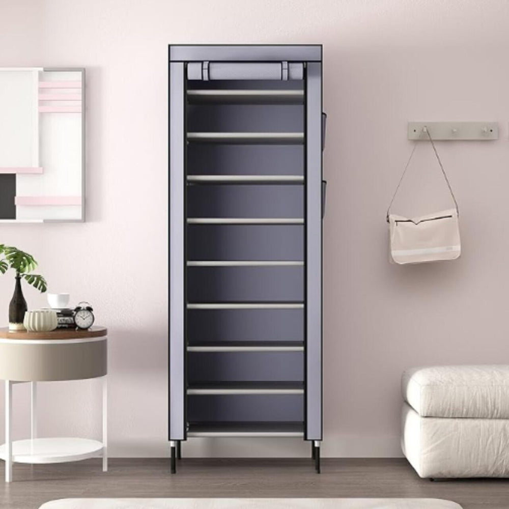 Marco resistente y fiable: Utiliza telas no tejidas tubería acero inoxidable de alta calidad y conectores de plástico PP de alta calidad. Zapateros de pasillo estructura fuerte y estable, buena capacidad de carga, resistencia a la presión, antioxidante, resistencia a la abrasión, y no es fácil de doblar. Dimensiones del zapatero: Contiene hasta 10 baldas, si necesita poner botas largas, puede elegir reducir el número de capas y ajustar la altura de la capa. Cada capa puede contener 2-3 pares de tamaño compacto con gran capacidad. Comodidad y orden: Perfecto para zapatos y botas de hombres, mujeres y niños adultos. Las dimensiones de este zapatero para el piso le facilitan maximizar el espacio de su pequeño armario, se encaja perfectamente en la entrada, el salón, el garaje, la terraza y cualquier esquina de su casa. Fácil de montar: Sin necesidad de otras herramientas, y sólo tomar unos minutos es muy simple y se puede ensamblar y modificar fácilmente, podrá disfrutar de la bricolaje y ver el éxito que hizo. Diseño elegante e higiénico: Dispone de una cubierta de tela ligera, transpirable, a prueba de la humedad, de fácil limpieza, sólo limpie con un paño húmedo.la puerta delantera se puede fijar con un velcro, la bisagra puede ayudarle a abrir y cerrar la puerta fácilmente, después de cerrar la puerta, puede proteger sus zapatos del polvo y los insectos.